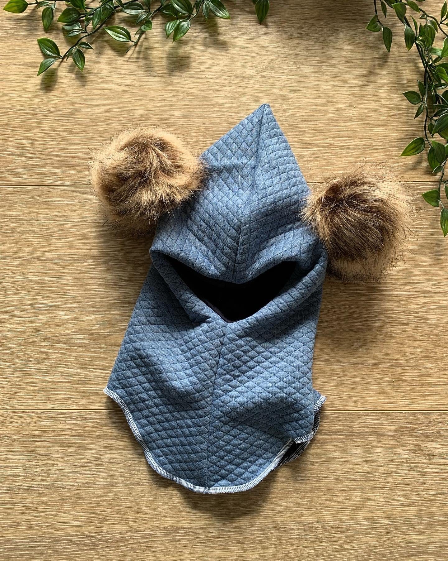 Lækker lun elefanthue m/ dobbelt lag, med blød inderside , og flot lyseblå quilt m/ to kvaste i akryl 💙