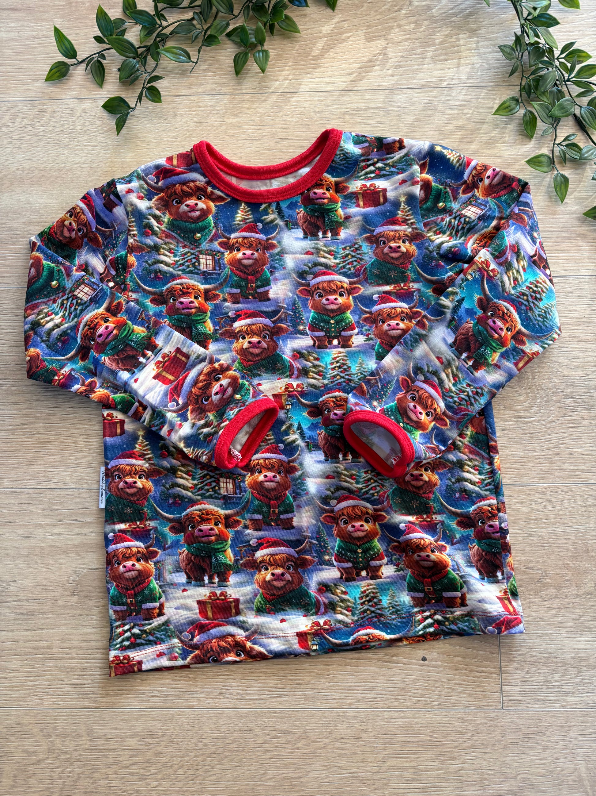 Trøje m/ jule skotsk højlandskvæg, str 116/122 🎄